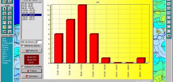 En sélectionnant l'un des histogrammes (Cations; Anions), une fenêtre apparait pour offrir plus d'options de visualisations, et permettre ainsi à l'analyste de détecter des anomalies pouvant apparaître en dehors de la cloche de GAUSS.