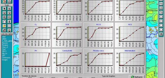 <p>Une deuxième présentation de l'hydrogéochimie des échantillons prélevés sur l'ensemble de points sélectionnés a été ajoutée. Il s'agit des courbes de fréquences cumulées pour chaque Anion et Cation.</p>
